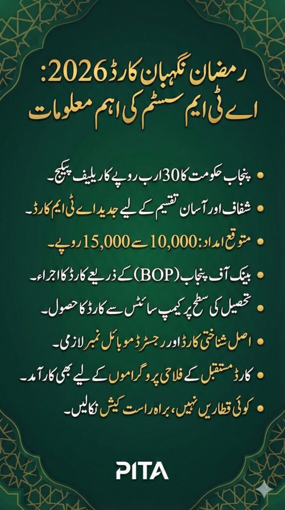 - Punjab Government ne modern ATM card system launch kiya hai Nigehban Ramzan Card 2026 ke liye.