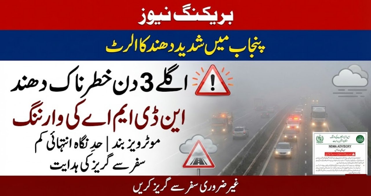 The National Disaster Management Authority (NDMA) has issued a dense fog alert for several parts of Punjab, warning that visibility may drop to dangerously low levels over the next three days. According to the advisory, both central and southern Punjab are expected to remain under thick fog, raising concerns for road travel, daily commuters, and highway operations. Fog conditions … Read more