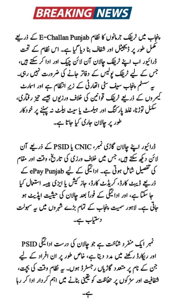 In this article, we are sharing all the details about E-Challan Punjab and how drivers can check and pay traffic fines online. With digital checking, PSID tracking, and secure payments through ePay Punjab, managing traffic challans has become simple and transparent. Drivers are advised to use only official government portals, pay challans on time, and follow traffic rules to avoid penalties and support safer roads in Punjab.