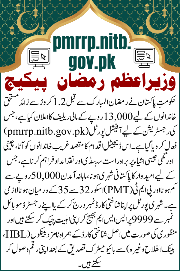 pmrrp.nitb.gov.pk PM Ramzan Relief Package 2026 Eligibility